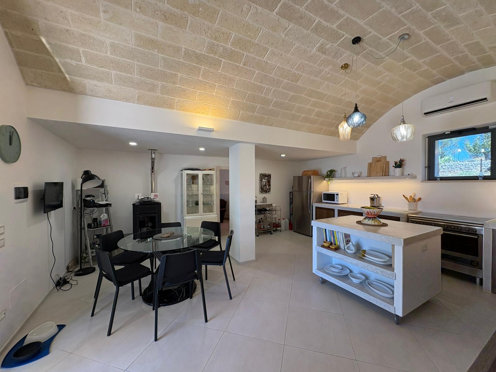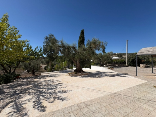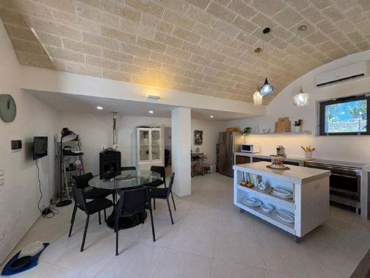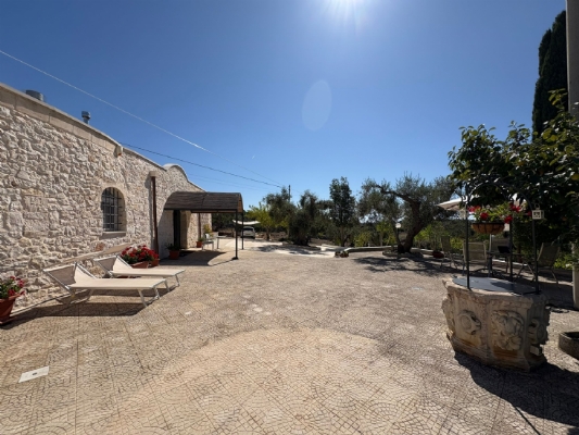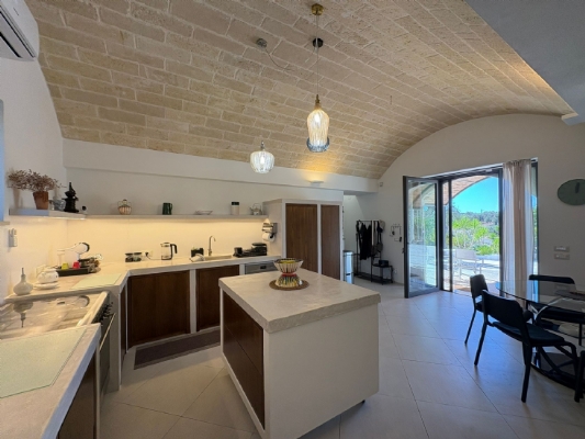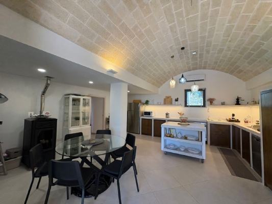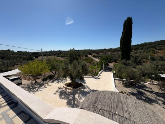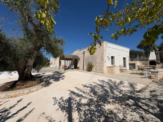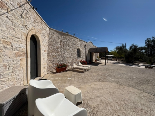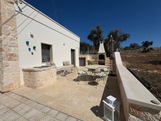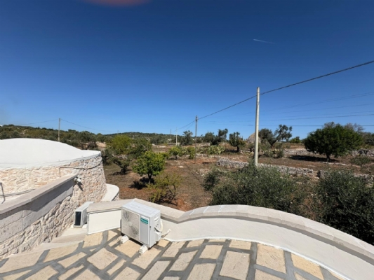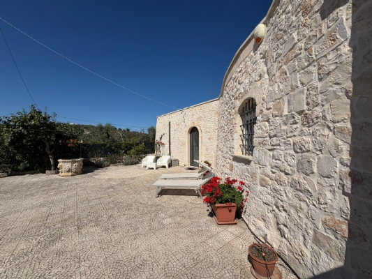 RUSTICO CON TRULLO OSTUNESE IN VALLE D'ITRA Interno del Rustico con Trullo Ostunese Cucina abitabile:Entrando nel Casale del Trullo, si accede direttamente alla cucina abitabile, moderna e funzionale, luminosa e spaziosa. Un ambiente ideale per chi ama cucinare e ospitare, con spazio per un tavolo conviviale e per momenti di vita quotidiana in famiglia. Soggiorno:Proseguendo, si raggiunge l'ampio soggiorno, cuore della casa, arredato con gusto e dotato di stufa in ghisa. Uno spazio accogliente e luminoso, perfetto per rilassarsi e trascorrere momenti di convivialità con amici e familiari. Camere da letto: La prima camera, finestrata in pietra, conserva il fascino autentico della tradizione pugliese. La seconda camera, con porta-finestra, è luminosa e ariosa, con facile accesso agli spazi esterni. La terza camera, anch'essa finestrata, è accogliente e riservata, perfetta per ospiti o studio. Bagni:La casa dispone di due bagni, uno finestrato con pietra a vista, elegante e caratteristico, e l'altro moderno, completo di tutti i comfort. Zona relax esterna:Completano la proprietà gli spazi esterni pensati per il benessere e il relax: una zona relax esterna panoramica, ideale per godersi il sole e la vista sulla Valle d'Itria. Esterni e comfort : Ampio patio con parcheggio privato Zona barbecue con lavandino Terreno con ulivi e alberi da frutta Deposito attrezzi e scala per terrazza panoramica Permesso approvato per piscina di 40 mq Riscaldamento a pellet con radiatori, stufa a legna in ghisa e climatizzatori caldo/freddo Allarme, porte e finestre antisfondamento Elettrodomestici inclusi: lavastoviglie, lavatrice, asciugatrice Due scaldabagni per l'acqua calda Due cisterne: una per l' irrigazione esterna ed una per l'immobile Irrigazone esterna ed illuminazione automatica Classe Energetica: G La proprietà dista solo 1km circa da CASALINI, piccolo centro abitato attrezzato di tutti i servizi primari (Supermercato, Fruttivendolo, Bar, Tabacchificio, Panificio, Ristoranti)