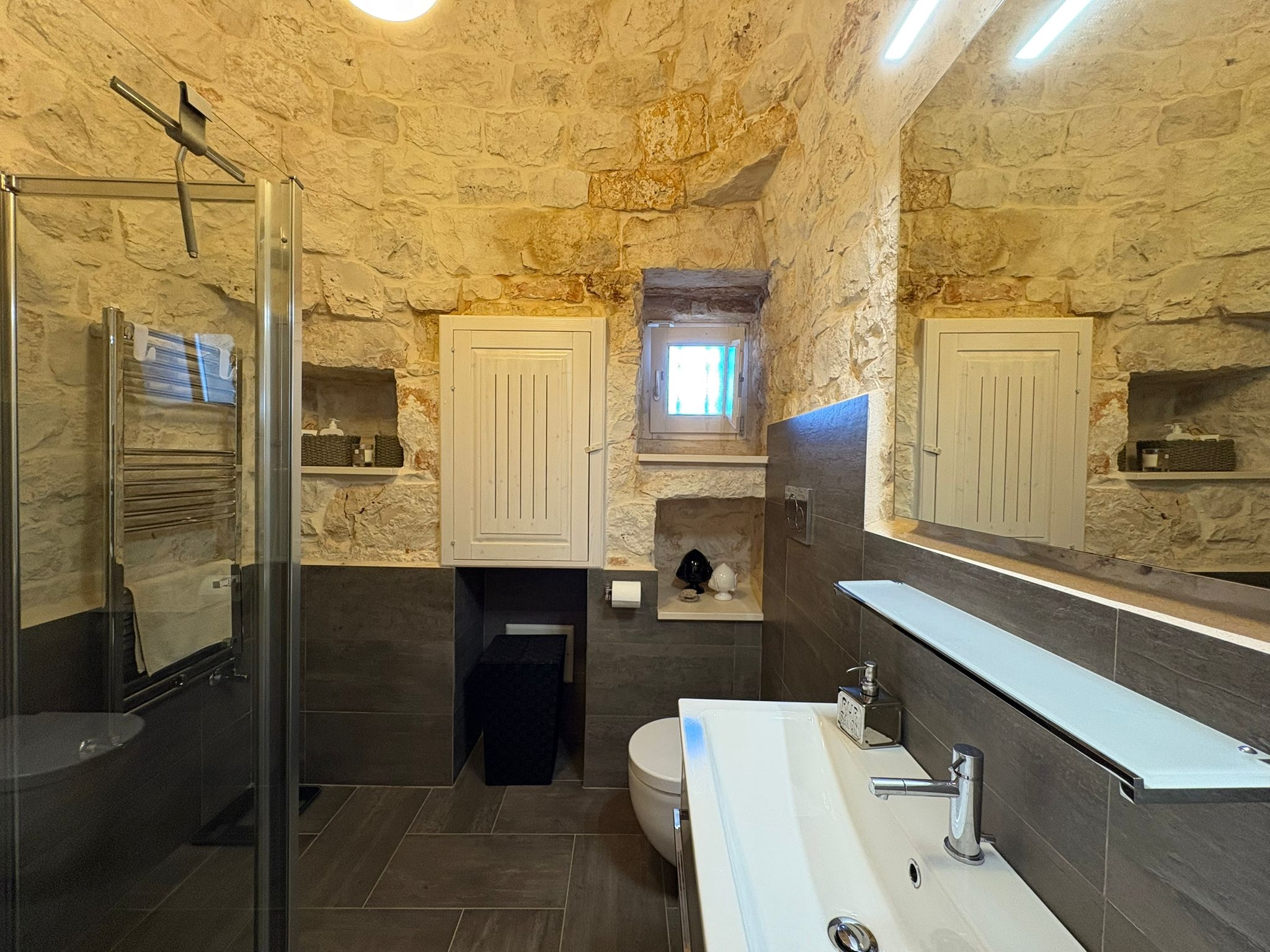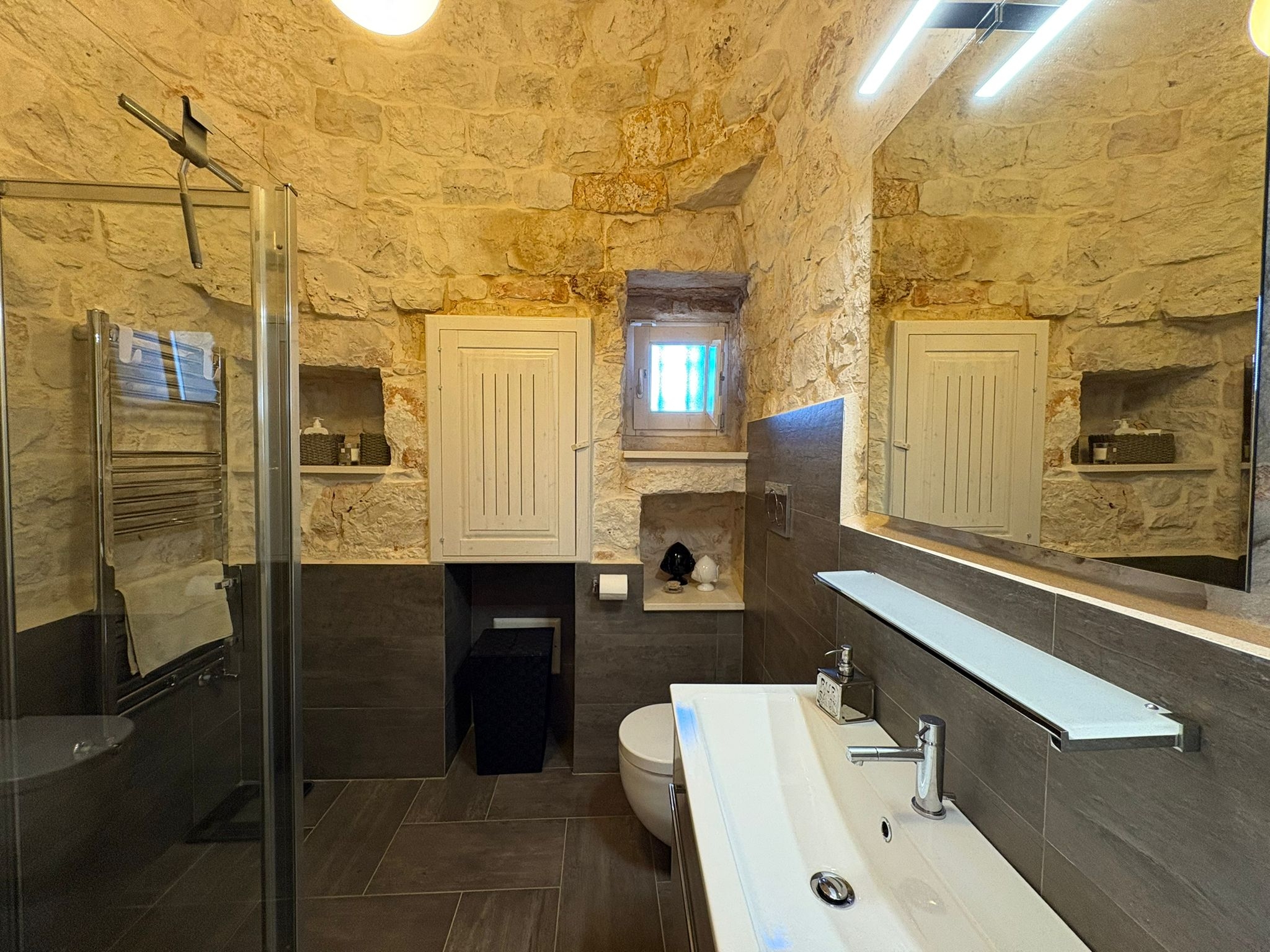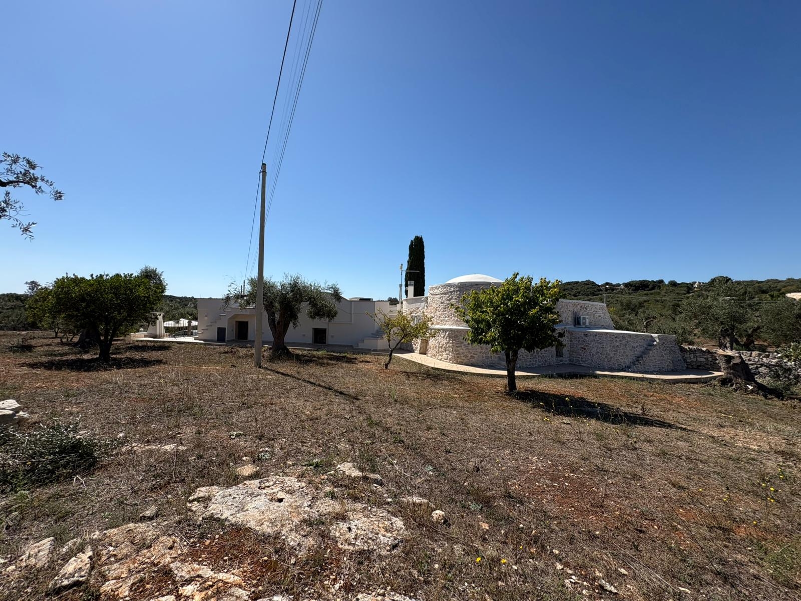 RUSTICO CON TRULLO OSTUNESE IN VALLE D'ITRA Interno del Rustico con Trullo Ostunese Cucina abitabile:Entrando nel Casale del Trullo, si accede direttamente alla cucina abitabile, moderna e funzionale, luminosa e spaziosa. Un ambiente ideale per chi ama cucinare e ospitare, con spazio per un tavolo conviviale e per momenti di vita quotidiana in famiglia. Soggiorno:Proseguendo, si raggiunge l'ampio soggiorno, cuore della casa, arredato con gusto e dotato di stufa in ghisa. Uno spazio accogliente e luminoso, perfetto per rilassarsi e trascorrere momenti di convivialità con amici e familiari. Camere da letto: La prima camera, finestrata in pietra, conserva il fascino autentico della tradizione pugliese. La seconda camera, con porta-finestra, è luminosa e ariosa, con facile accesso agli spazi esterni. La terza camera, anch'essa finestrata, è accogliente e riservata, perfetta per ospiti o studio. Bagni:La casa dispone di due bagni, uno finestrato con pietra a vista, elegante e caratteristico, e l'altro moderno, completo di tutti i comfort. Zona relax esterna:Completano la proprietà gli spazi esterni pensati per il benessere e il relax: una zona relax esterna panoramica, ideale per godersi il sole e la vista sulla Valle d'Itria. Esterni e comfort : Ampio patio con parcheggio privato Zona barbecue con lavandino Terreno con ulivi e alberi da frutta Deposito attrezzi e scala per terrazza panoramica Permesso approvato per piscina di 40 mq Riscaldamento a pellet con radiatori, stufa a legna in ghisa e climatizzatori caldo/freddo Allarme, porte e finestre antisfondamento Elettrodomestici inclusi: lavastoviglie, lavatrice, asciugatrice Due scaldabagni per l'acqua calda Due cisterne: una per l' irrigazione esterna ed una per l'immobile Irrigazone esterna ed illuminazione automatica Classe Energetica: G La proprietà dista solo 1km circa da CASALINI, piccolo centro abitato attrezzato di tutti i servizi primari (Supermercato, Fruttivendolo, Bar, Tabacchificio, Panificio, Ristoranti)