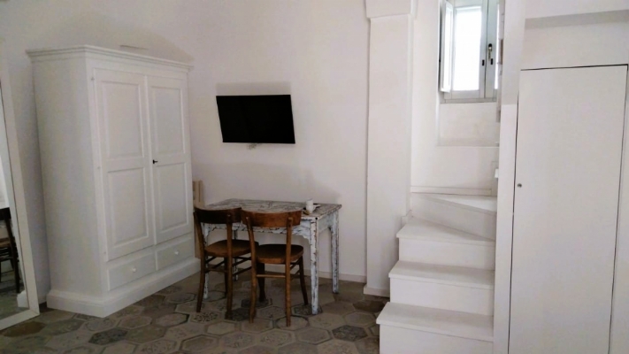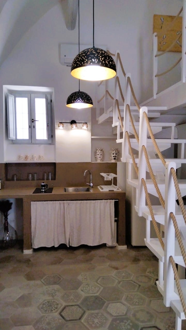 Proponiamo in vendita uno stabile ristrutturato composto da tre unità abitative indipendenti, soluzione ideale sia come investimento a reddito sia per chi desidera una proprietà versatile con più abitazioni autonome. Al piano terra si trovano due monolocali soppalcati, ciascuno con ingresso indipendente e spazi studiati per garantire comfort e funzionalità. Il primo monolocale accoglie una zona giorno con angolo cottura finestrato, seguita da un comodo divano letto, perfetto per ottimizzare gli spazi e ospitare. Completa il livello un pratico ripostiglio e la predisposizione per un caminetto, elemento che conferisce carattere e autenticità all’ambiente. Il bagno, moderno e curato, è dotato di doccia con sistema di cromoterapia, mentre il soppalco in legno ospita la camera da letto, sfruttando in modo intelligente lo sviluppo verticale. Il secondo monolocale si sviluppa in un’ampia zona giorno openspace con angolo cottura finestrato e ripostiglio. Il bagno, anch’esso finestrato, è completo di doccia con cromoterapia. Un soppalco in muratura accoglie il letto matrimoniale, creando un ambiente riservato e ben distribuito. Al primo piano troviamo un bilocale con balcone, inserito in un caratteristico stabile d’angolo. L’ingresso si apre su un accogliente openspace, arredato con comodi divani e collegato a un cucinotto funzionale, pensato per vivere la casa in modo pratico e conviviale. La zona notte ospita una camera da letto con armadio, mentre il bagno principale, moderno e rifinito, è dotato di doccia con cromoterapia. A rendere l’ambiente ancora più esclusivo, una vasca posizionata separatamente, ideale per momenti di puro relax. Fiore all’occhiello della proprietà è l’ampia terrazza con giardino, uno spazio riservato dove godere dell’aria aperta e di suggestivi scorci sulla città bianca. Sul livello superiore è presente un ulteriore ambiente con cucina e tavolo, perfetto per cene all’aperto e momenti conviviali, oltre a un secondo bagno che aumenta la praticità della casa.