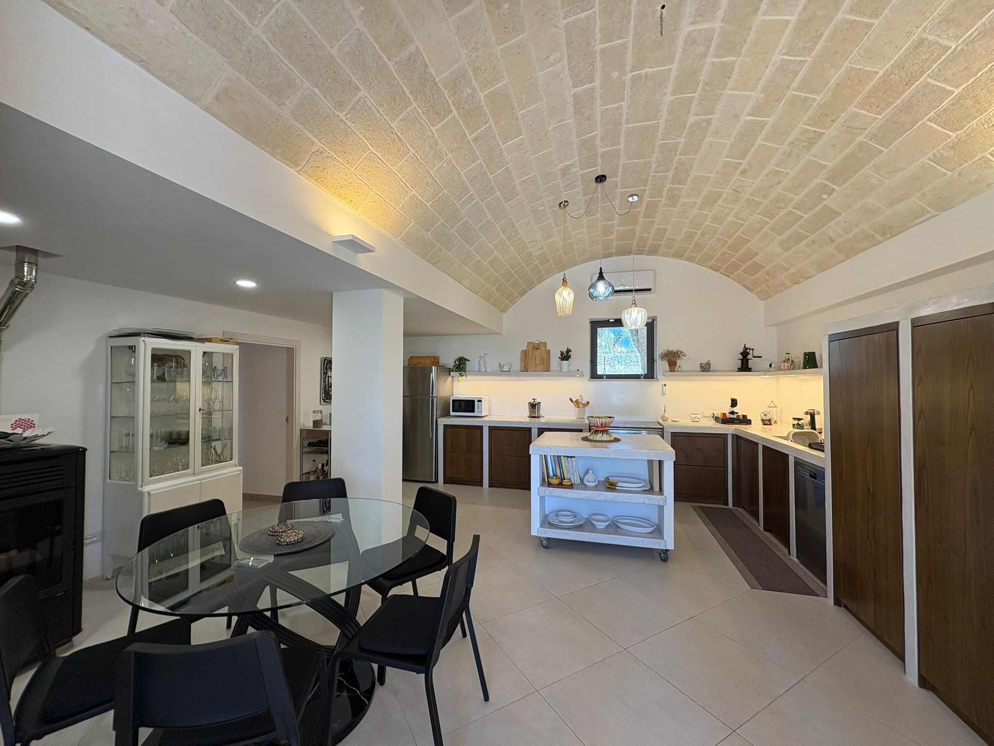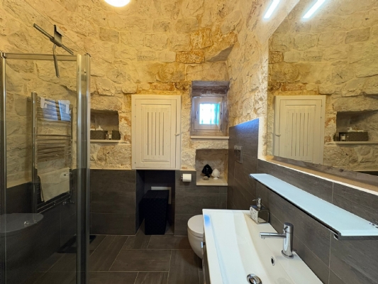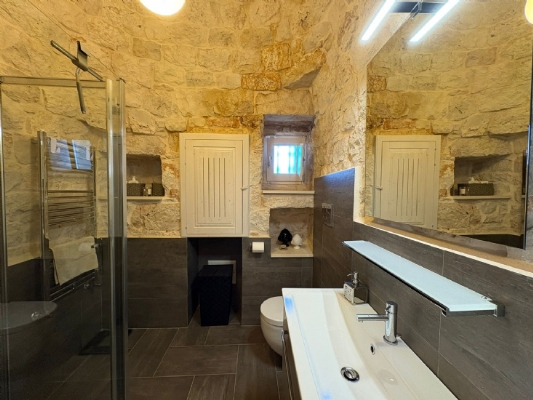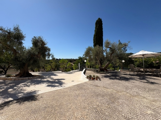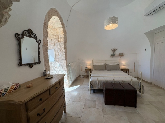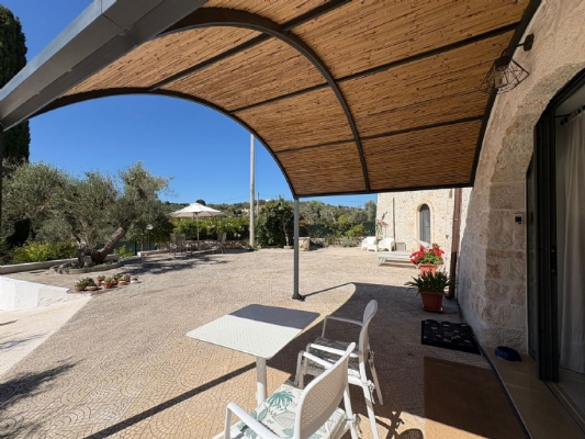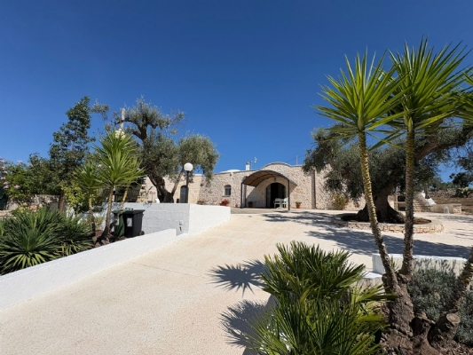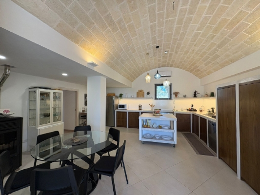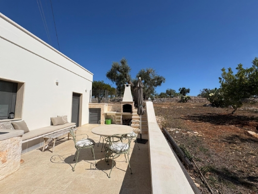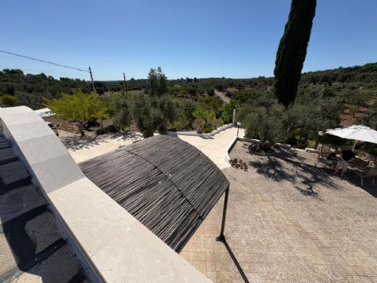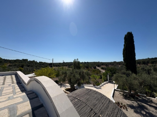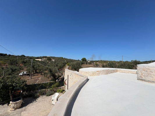 RUSTICO CON TRULLO OSTUNESE IN VALLE D'ITRA Interno del Rustico con Trullo Ostunese Cucina abitabile:Entrando nel Casale del Trullo, si accede direttamente alla cucina abitabile, moderna e funzionale, luminosa e spaziosa. Un ambiente ideale per chi ama cucinare e ospitare, con spazio per un tavolo conviviale e per momenti di vita quotidiana in famiglia. Soggiorno:Proseguendo, si raggiunge l'ampio soggiorno, cuore della casa, arredato con gusto e dotato di stufa in ghisa. Uno spazio accogliente e luminoso, perfetto per rilassarsi e trascorrere momenti di convivialità con amici e familiari. Camere da letto: La prima camera, finestrata in pietra, conserva il fascino autentico della tradizione pugliese. La seconda camera, con porta-finestra, è luminosa e ariosa, con facile accesso agli spazi esterni. La terza camera, anch'essa finestrata, è accogliente e riservata, perfetta per ospiti o studio. Bagni:La casa dispone di due bagni, uno finestrato con pietra a vista, elegante e caratteristico, e l'altro moderno, completo di tutti i comfort. Zona relax esterna:Completano la proprietà gli spazi esterni pensati per il benessere e il relax: una zona relax esterna panoramica, ideale per godersi il sole e la vista sulla Valle d'Itria. Esterni e comfort : Ampio patio con parcheggio privato Zona barbecue con lavandino Terreno con ulivi e alberi da frutta Deposito attrezzi e scala per terrazza panoramica Permesso approvato per piscina di 40 mq Riscaldamento a pellet con radiatori, stufa a legna in ghisa e climatizzatori caldo/freddo Allarme, porte e finestre antisfondamento Elettrodomestici inclusi: lavastoviglie, lavatrice, asciugatrice Due scaldabagni per l'acqua calda Due cisterne: una per l' irrigazione esterna ed una per l'immobile Irrigazone esterna ed illuminazione automatica Classe Energetica: G La proprietà dista solo 1km circa da CASALINI, piccolo centro abitato attrezzato di tutti i servizi primari (Supermercato, Fruttivendolo, Bar, Tabacchificio, Panificio, Ristoranti)