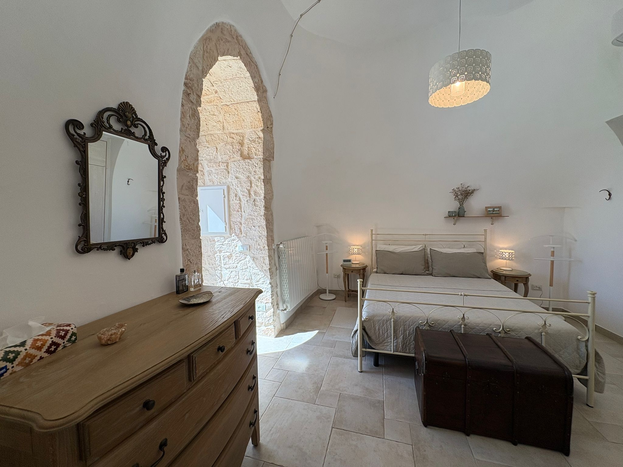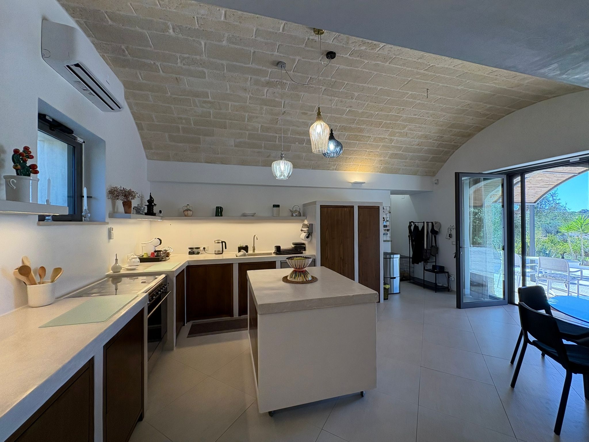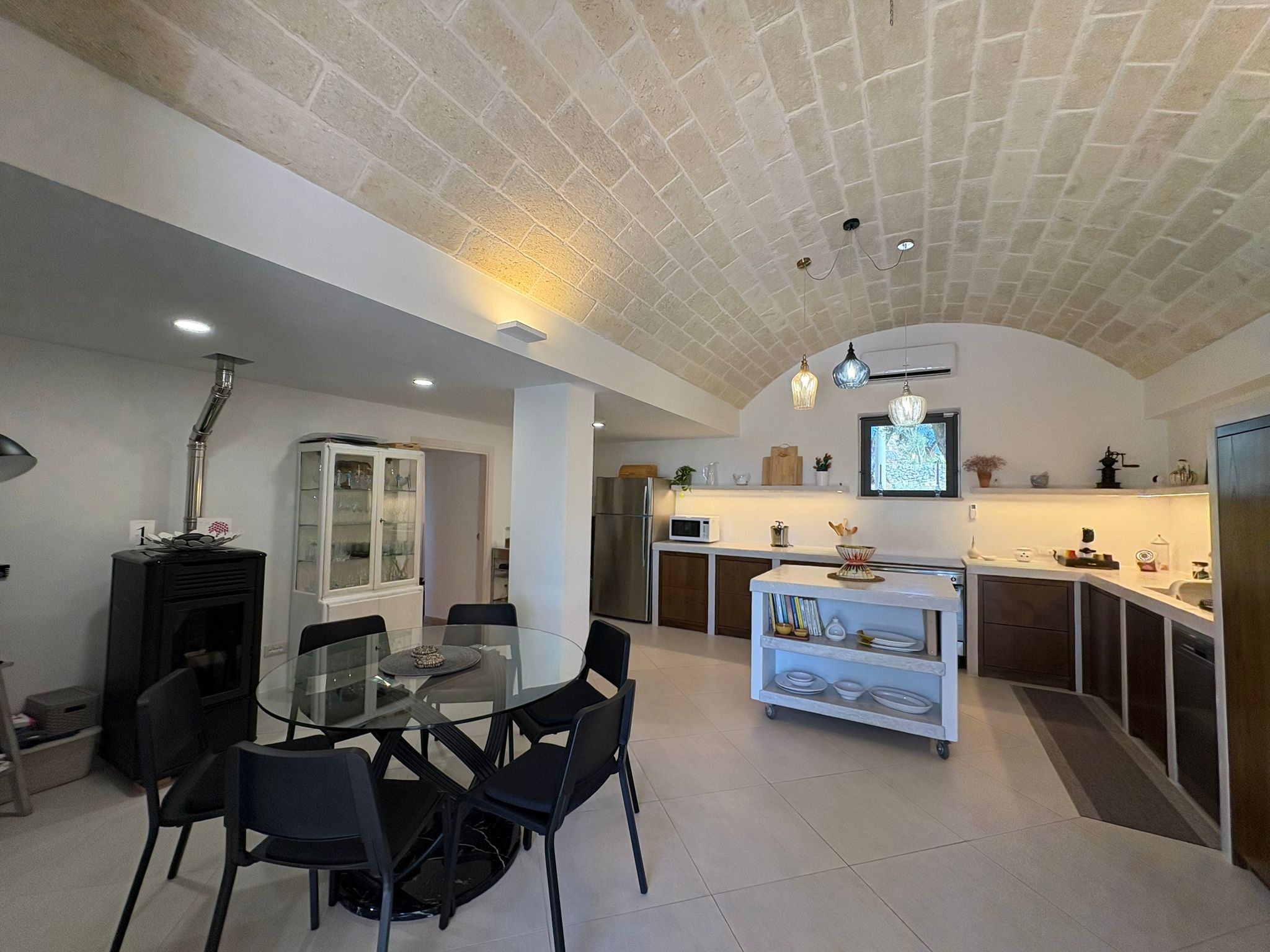 RUSTICO CON TRULLO OSTUNESE IN VALLE D'ITRA Interno del Rustico con Trullo Ostunese Cucina abitabile:Entrando nel Casale del Trullo, si accede direttamente alla cucina abitabile, moderna e funzionale, luminosa e spaziosa. Un ambiente ideale per chi ama cucinare e ospitare, con spazio per un tavolo conviviale e per momenti di vita quotidiana in famiglia. Soggiorno:Proseguendo, si raggiunge l'ampio soggiorno, cuore della casa, arredato con gusto e dotato di stufa in ghisa. Uno spazio accogliente e luminoso, perfetto per rilassarsi e trascorrere momenti di convivialità con amici e familiari. Camere da letto: La prima camera, finestrata in pietra, conserva il fascino autentico della tradizione pugliese. La seconda camera, con porta-finestra, è luminosa e ariosa, con facile accesso agli spazi esterni. La terza camera, anch'essa finestrata, è accogliente e riservata, perfetta per ospiti o studio. Bagni:La casa dispone di due bagni, uno finestrato con pietra a vista, elegante e caratteristico, e l'altro moderno, completo di tutti i comfort. Zona relax esterna:Completano la proprietà gli spazi esterni pensati per il benessere e il relax: una zona relax esterna panoramica, ideale per godersi il sole e la vista sulla Valle d'Itria. Esterni e comfort : Ampio patio con parcheggio privato Zona barbecue con lavandino Terreno con ulivi e alberi da frutta Deposito attrezzi e scala per terrazza panoramica Permesso approvato per piscina di 40 mq Riscaldamento a pellet con radiatori, stufa a legna in ghisa e climatizzatori caldo/freddo Allarme, porte e finestre antisfondamento Elettrodomestici inclusi: lavastoviglie, lavatrice, asciugatrice Due scaldabagni per l'acqua calda Due cisterne: una per l' irrigazione esterna ed una per l'immobile Irrigazone esterna ed illuminazione automatica Classe Energetica: G La proprietà dista solo 1km circa da CASALINI, piccolo centro abitato attrezzato di tutti i servizi primari (Supermercato, Fruttivendolo, Bar, Tabacchificio, Panificio, Ristoranti)