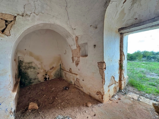 Trullo autentico con terreno e progetto in itinere In Contrada Cappella Vecchia (Ceglie Messapica) proponiamo in vendita un trullo autentico, conservato allo stato originale da ristrutturare, ideale per chi desidera recuperare una struttura storica tipica della campagna pugliese. La proprietà dispone di un progetto in itinere, che prevede la realizzazione di una piscina di 40 m² e la possibilità di ampliamento del fabbricato di circa 70 m². Un percorso progettuale che permette al futuro proprietario di personalizzare la struttura secondo le proprie esigenze, valorizzandola come residenza privata o investimento turistico. Il trullo si trova in una zona tranquilla e panoramica, a breve distanza dal centro di Ceglie Messapica, facilmente raggiungibile in pochi minuti d’auto. La proprietà comprende due terreni di pertinenza, per un totale di circa 27.000 m², caratterizzati dalla tipica vegetazione della campagna pugliese, ideali per chi desidera avere ampi spazi all’aperto e un contesto agricolo naturale.