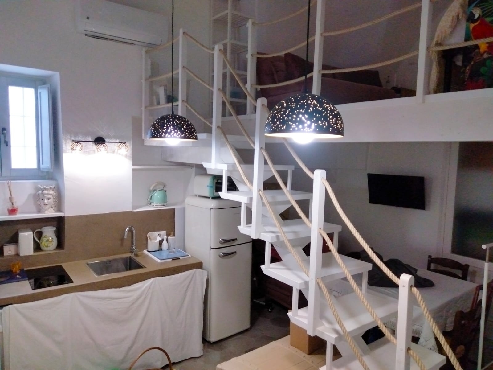 Proponiamo in vendita uno stabile ristrutturato composto da tre unità abitative indipendenti, soluzione ideale sia come investimento a reddito sia per chi desidera una proprietà versatile con più abitazioni autonome. Al piano terra si trovano due monolocali soppalcati, ciascuno con ingresso indipendente e spazi studiati per garantire comfort e funzionalità. Il primo monolocale accoglie una zona giorno con angolo cottura finestrato, seguita da un comodo divano letto, perfetto per ottimizzare gli spazi e ospitare. Completa il livello un pratico ripostiglio e la predisposizione per un caminetto, elemento che conferisce carattere e autenticità all’ambiente. Il bagno, moderno e curato, è dotato di doccia con sistema di cromoterapia, mentre il soppalco in legno ospita la camera da letto, sfruttando in modo intelligente lo sviluppo verticale. Il secondo monolocale si sviluppa in un’ampia zona giorno openspace con angolo cottura finestrato e ripostiglio. Il bagno, anch’esso finestrato, è completo di doccia con cromoterapia. Un soppalco in muratura accoglie il letto matrimoniale, creando un ambiente riservato e ben distribuito. Al primo piano troviamo un bilocale con balcone, inserito in un caratteristico stabile d’angolo. L’ingresso si apre su un accogliente openspace, arredato con comodi divani e collegato a un cucinotto funzionale, pensato per vivere la casa in modo pratico e conviviale. La zona notte ospita una camera da letto con armadio, mentre il bagno principale, moderno e rifinito, è dotato di doccia con cromoterapia. A rendere l’ambiente ancora più esclusivo, una vasca posizionata separatamente, ideale per momenti di puro relax. Fiore all’occhiello della proprietà è l’ampia terrazza con giardino, uno spazio riservato dove godere dell’aria aperta e di suggestivi scorci sulla città bianca. Sul livello superiore è presente un ulteriore ambiente con cucina e tavolo, perfetto per cene all’aperto e momenti conviviali, oltre a un secondo bagno che aumenta la praticità della casa.